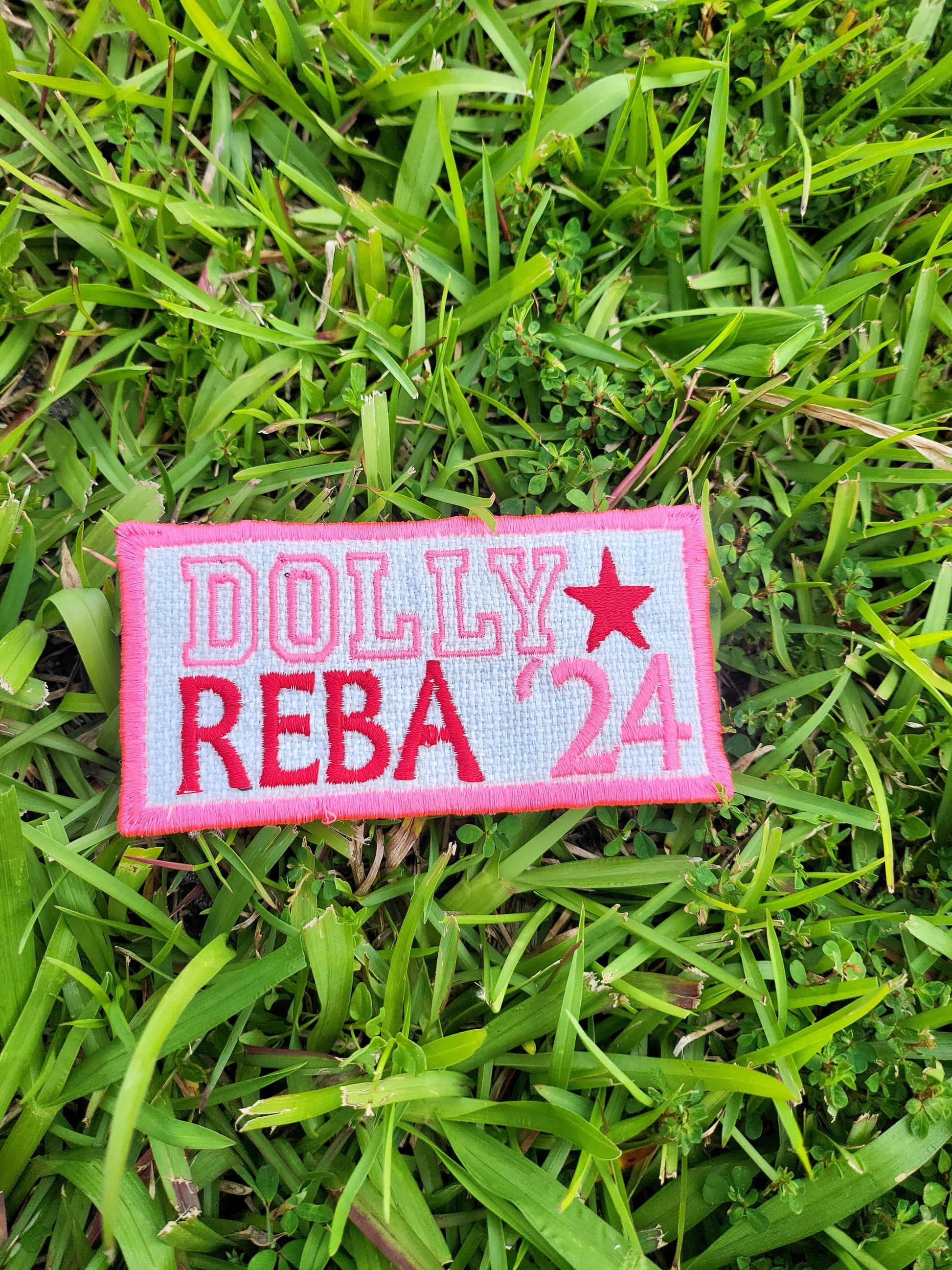 Title: Embroidered Dolly and Reba 2024 Patch - Iron-On or Sew-On Patch is 4.5 inches x 2.5 inches